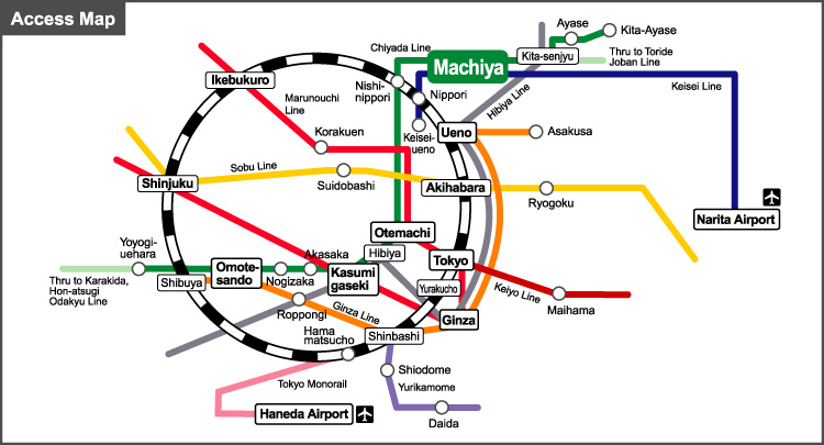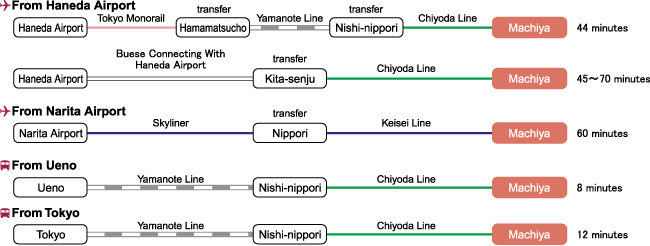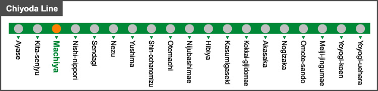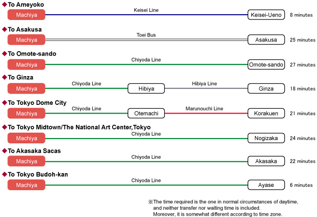 Access from Machiya Station to the main sightseeing spot